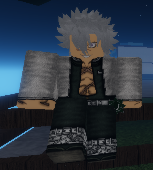 He looks pretty much like his anime/manga counterpart, having spiky white hair, scars all over his skin and a crazed expression on his face. He also wears the Sanemi Shinazugawa [+] and Sanemi Shinazugawa [-] set made by Astral Clothing and his Nichirin Sword is placed on his waist.